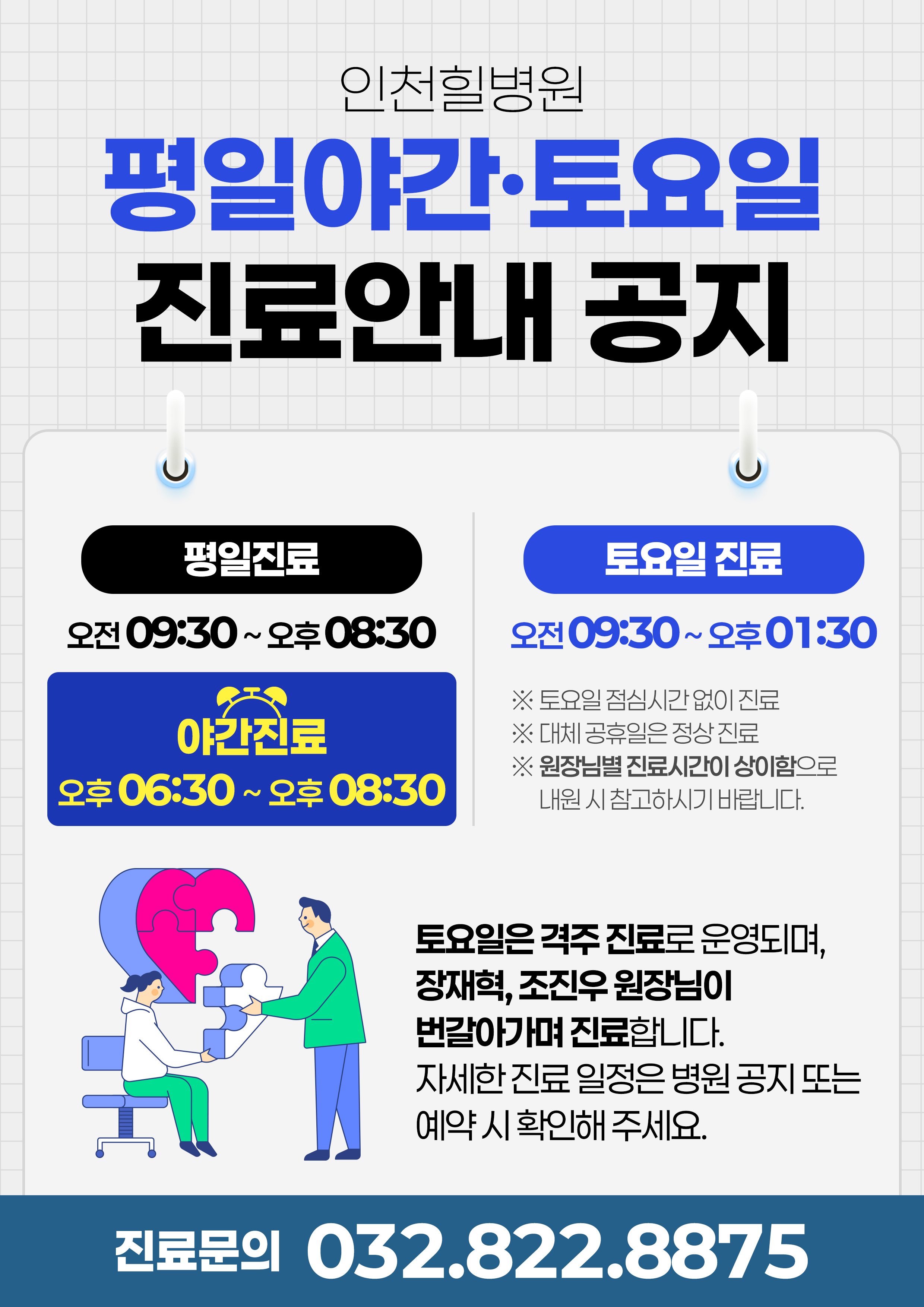 정신건강 통합병원 ‘인천힐병원’ 입니다.
